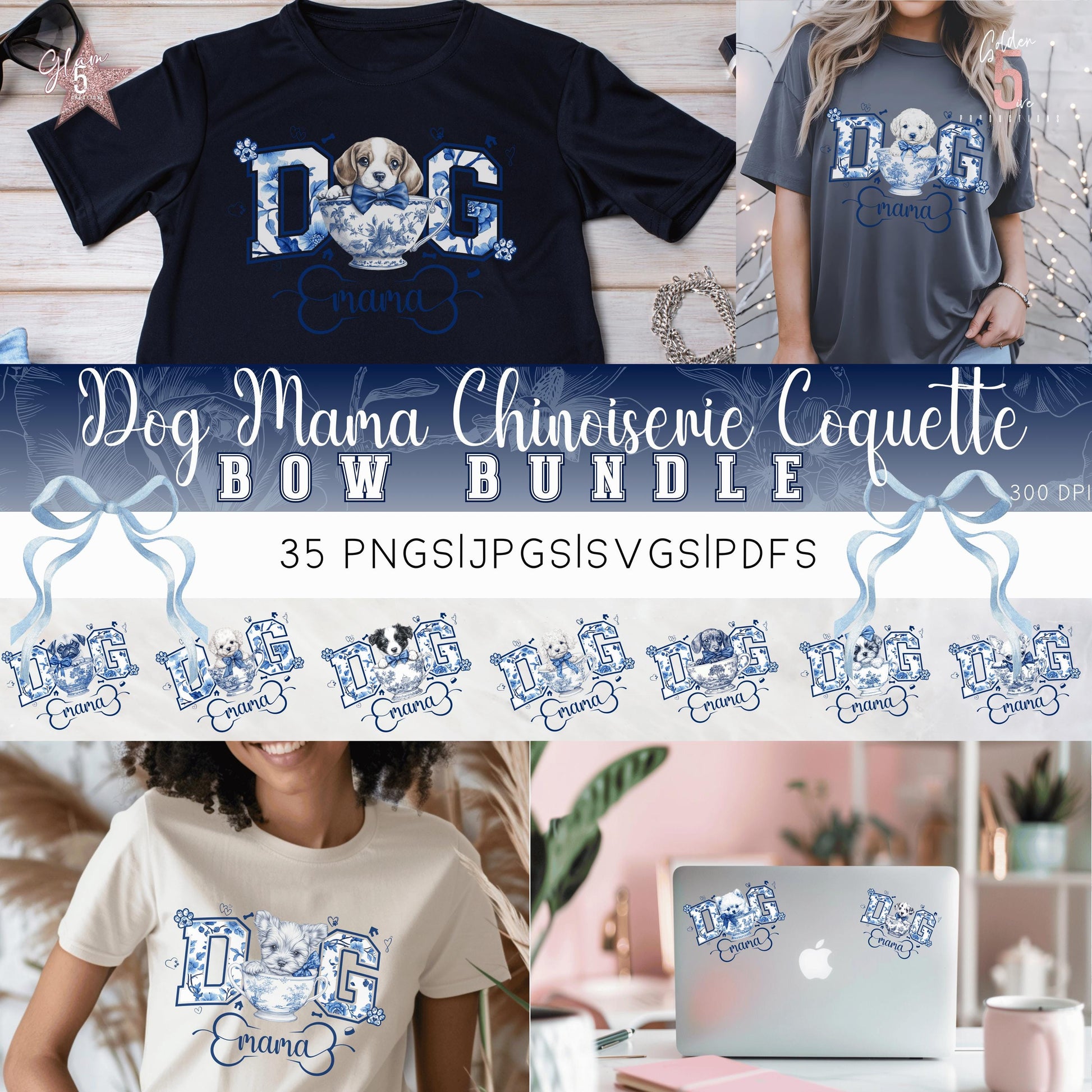 Dog Mom Chinoiserie Coquette Bow Dog Lover Digital Design SVG, PNG, JPG, PDF - Instant Download