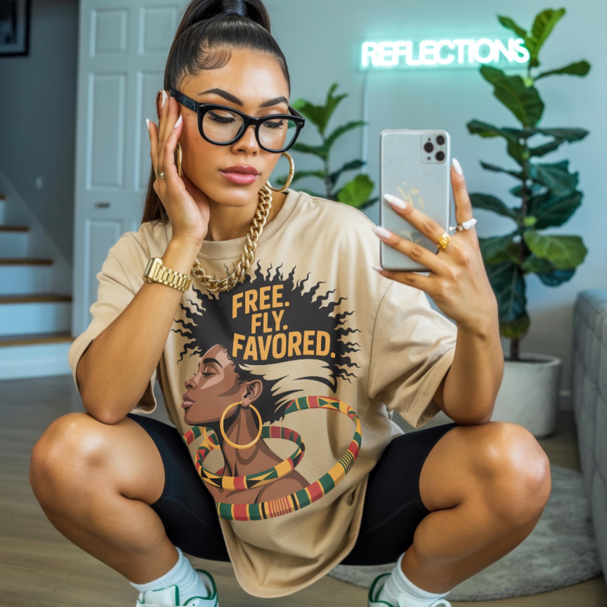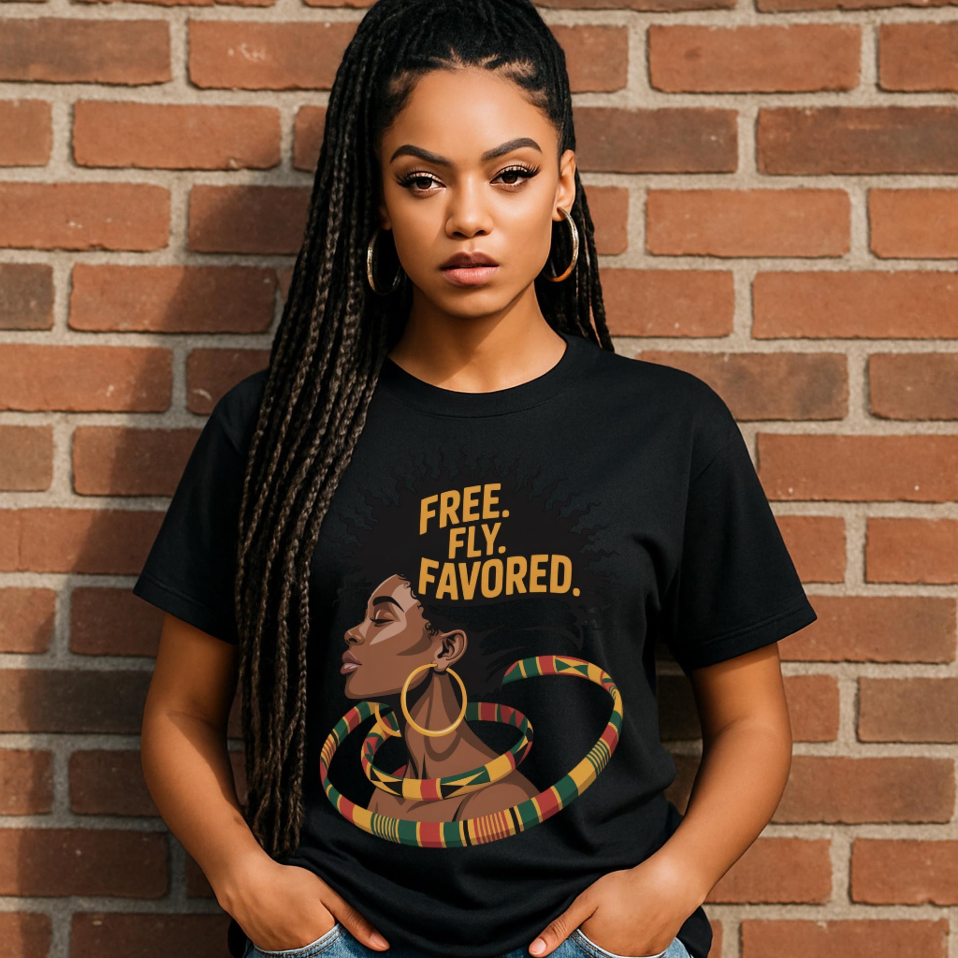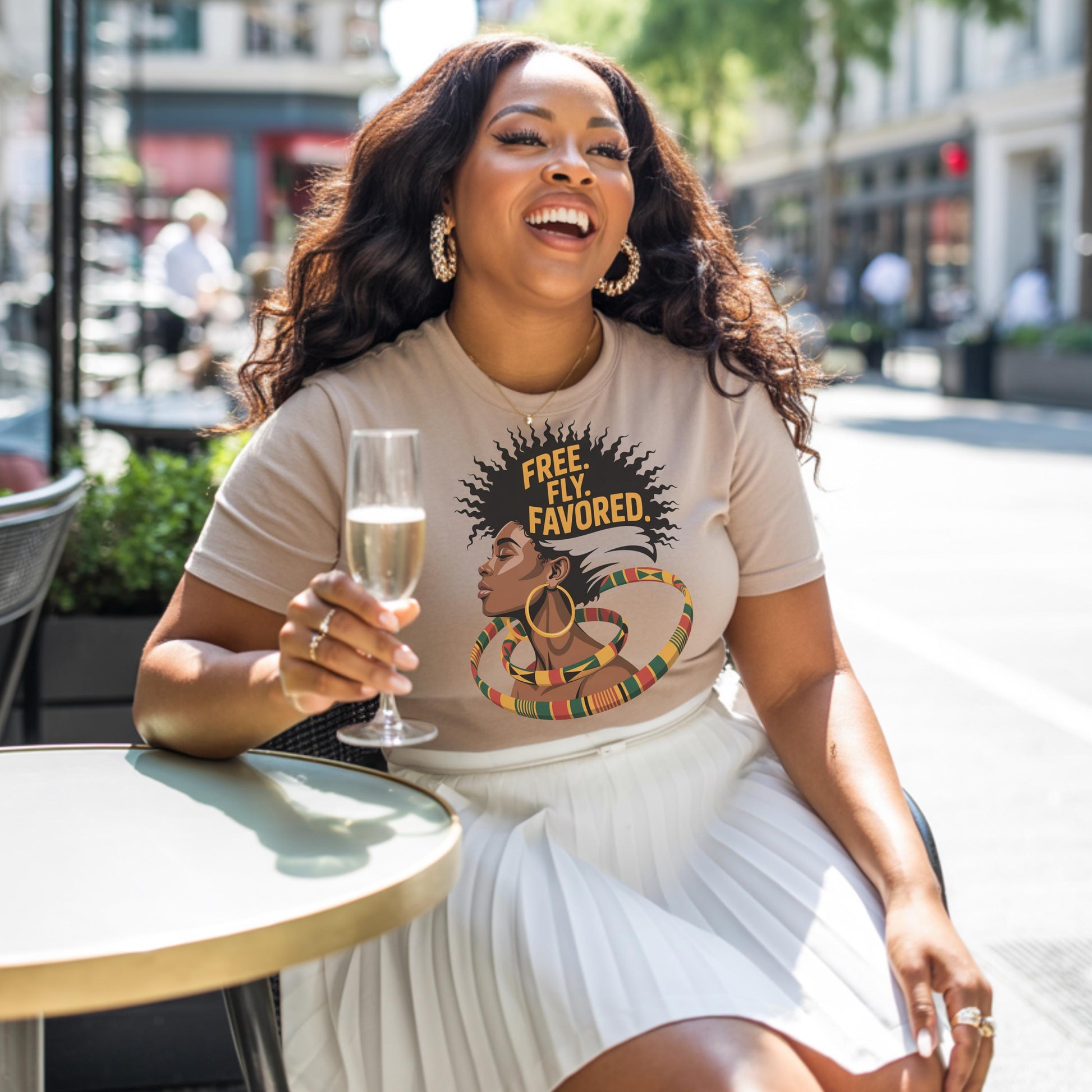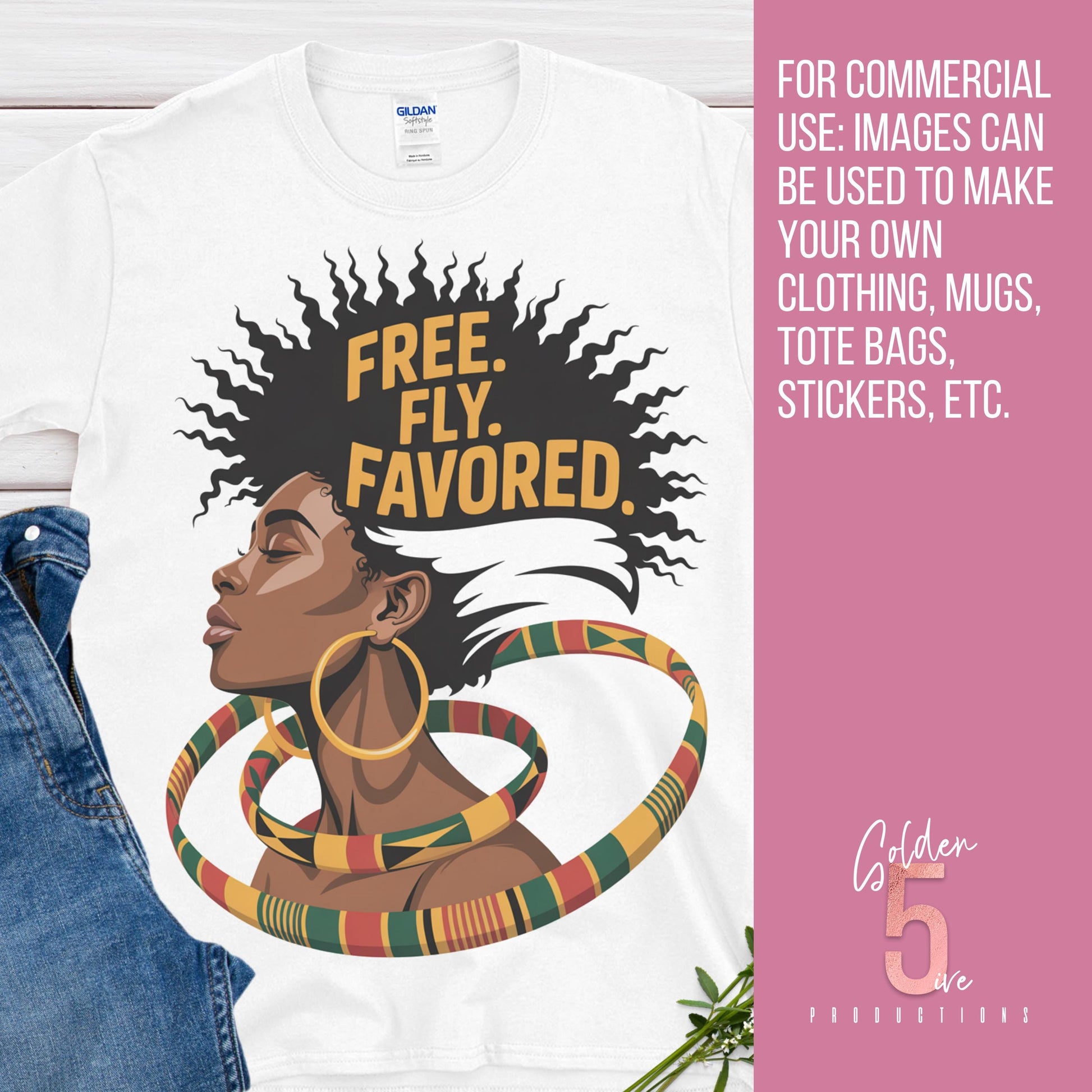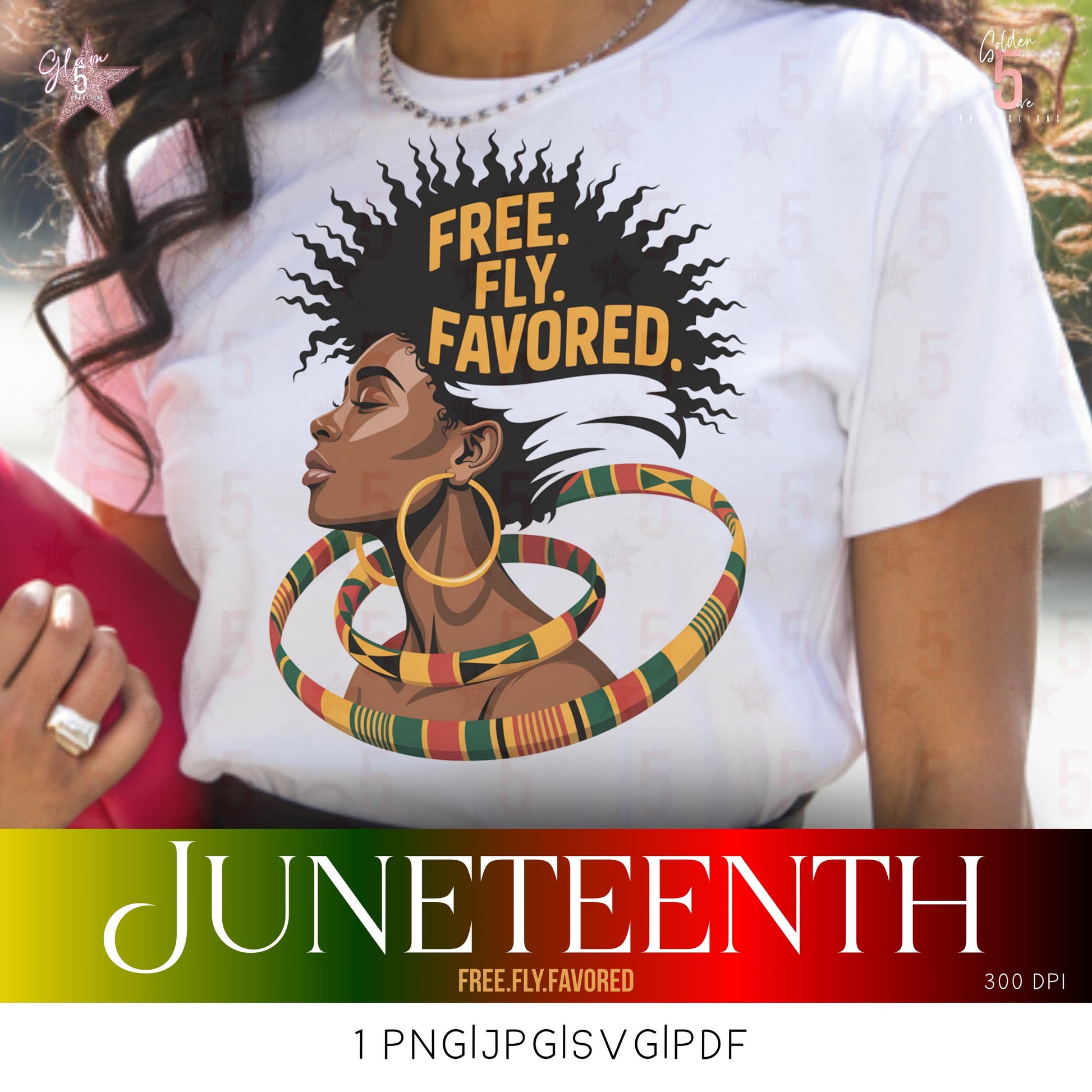 This "Free. Fly. Favored." Juneteenth design is more than just a graphic—it's a whole statement. Created for the confident, faith-filled, and fly Black woman, this digital download celebrates Black excellence, faith, and that millennial flavor.