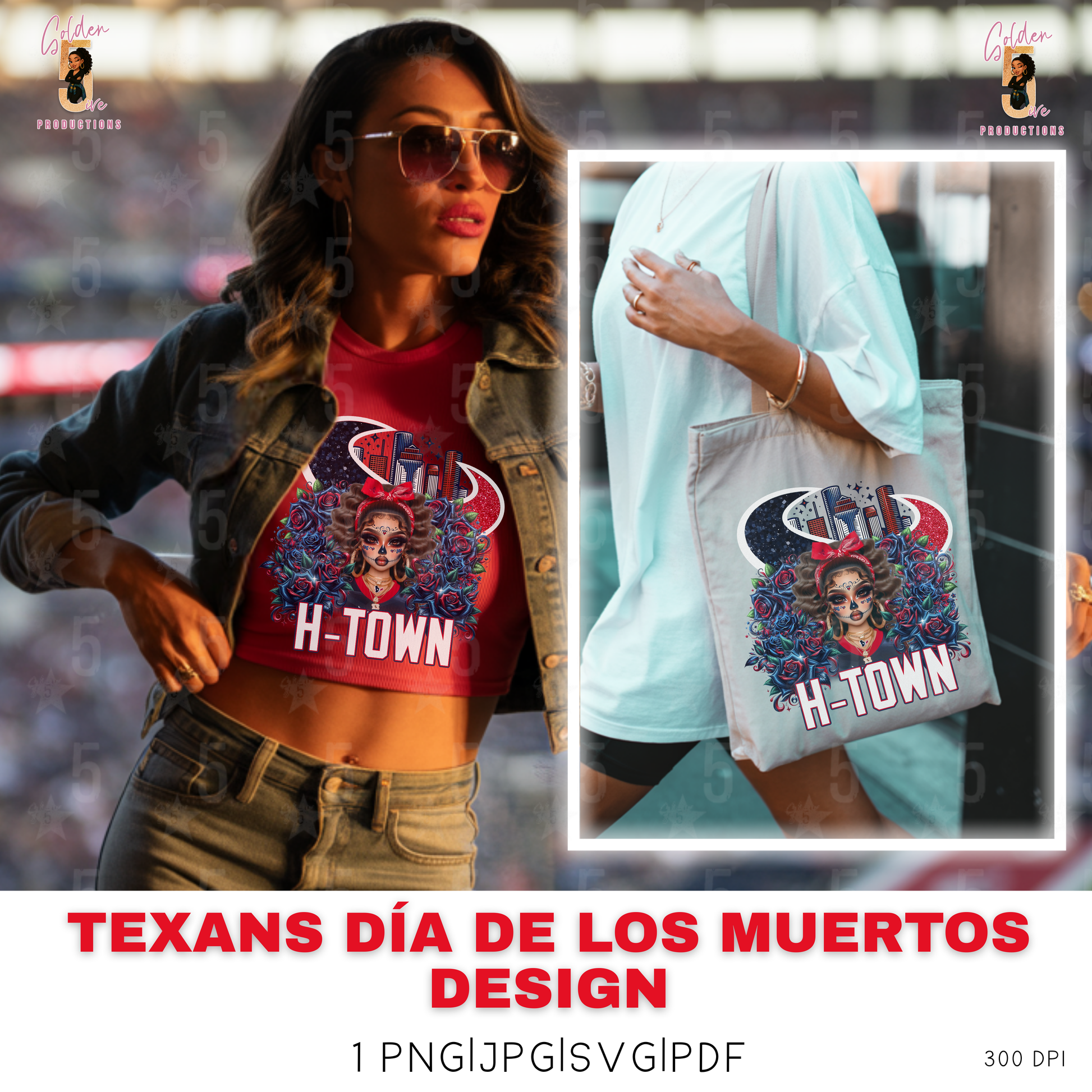 Houston Texans Día de los Muertos Design SVG, PNG, JPG, PDF - Instant Download