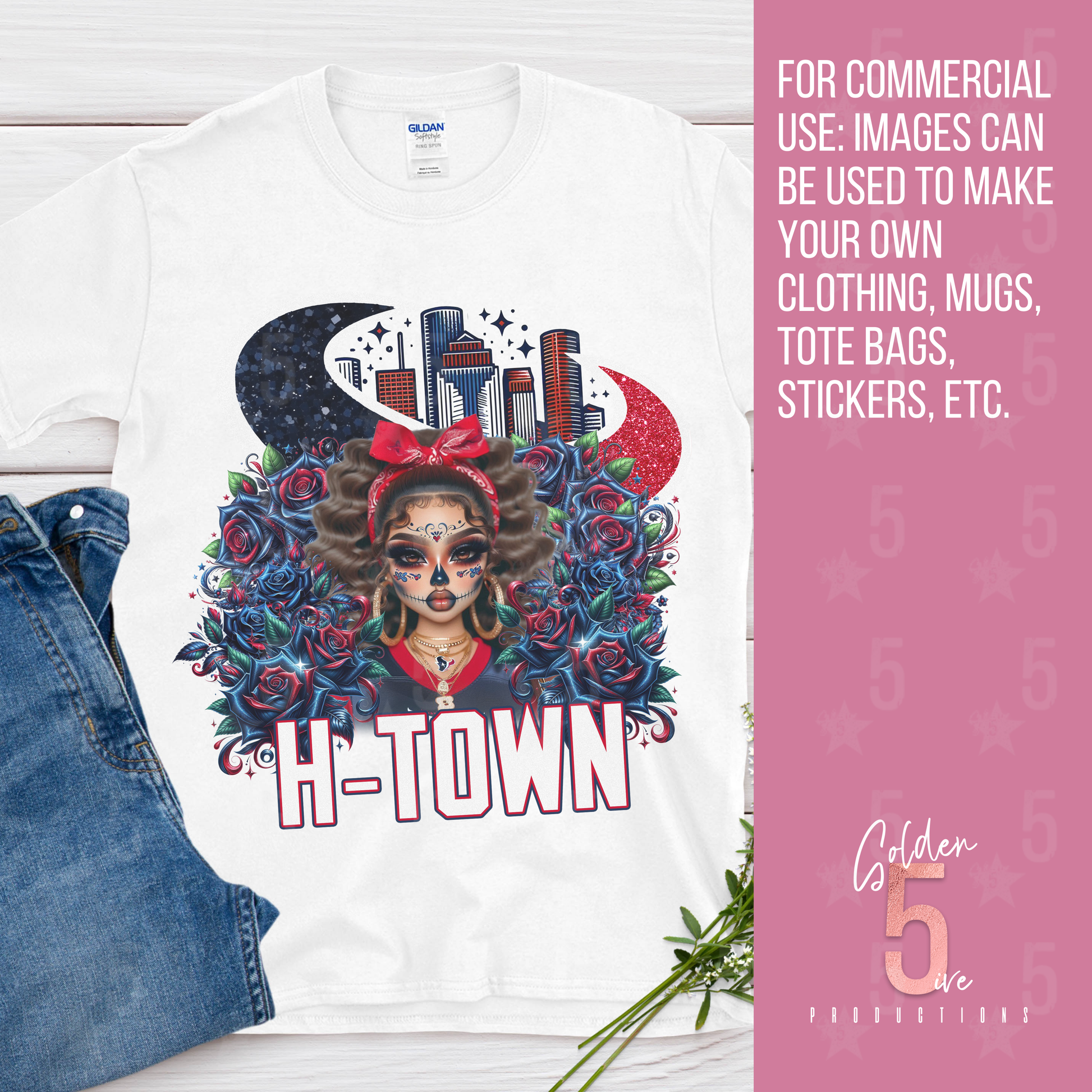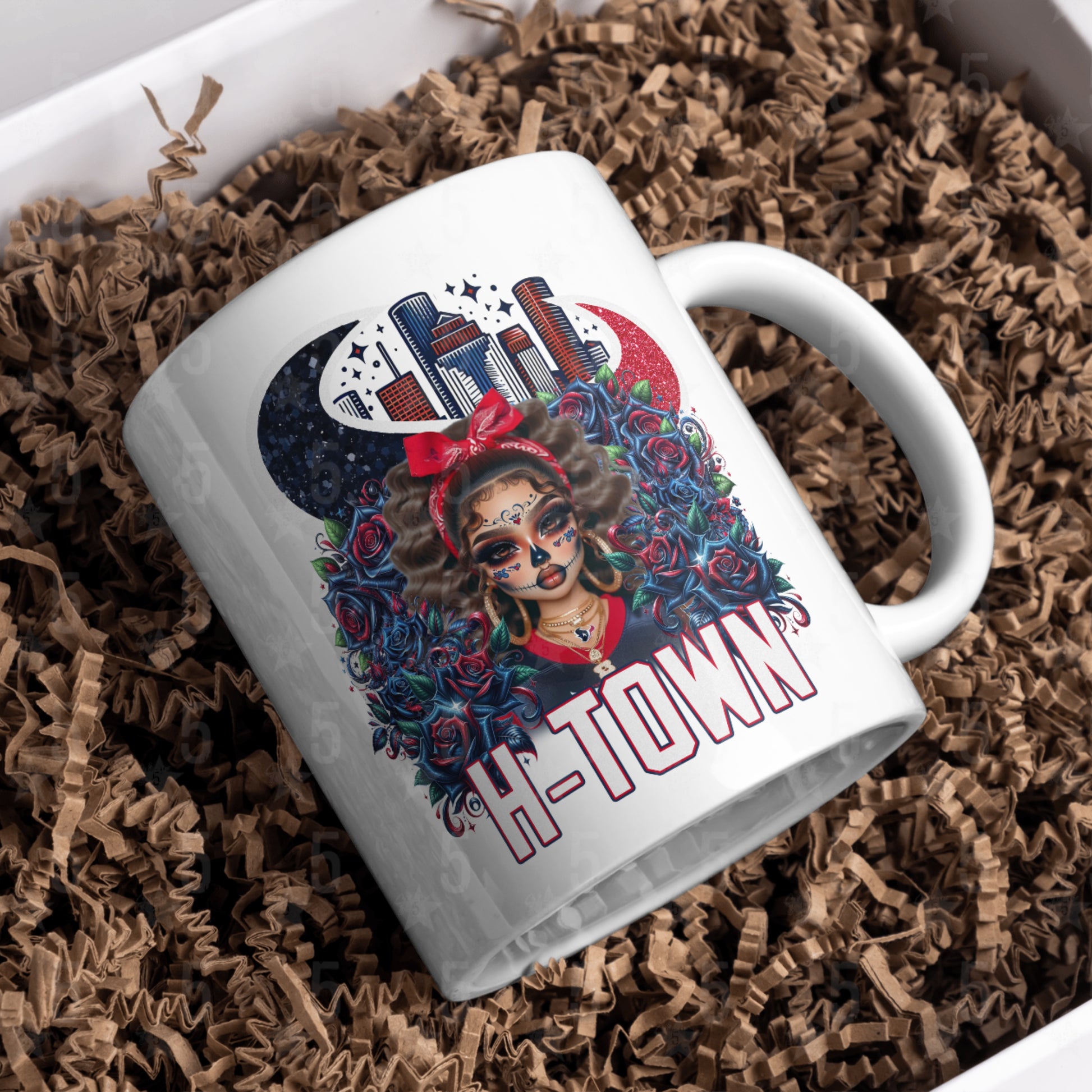 H-TOWN!!!! Celebrate your love for Texans football, culture, and fashion with this unique Día de los Muertos–inspired design. This bold artwork blends NFL fan pride with traditional Day of the Dead sugar skull aesthetics, creating the perfect design for game day, tailgates, or year-round style.