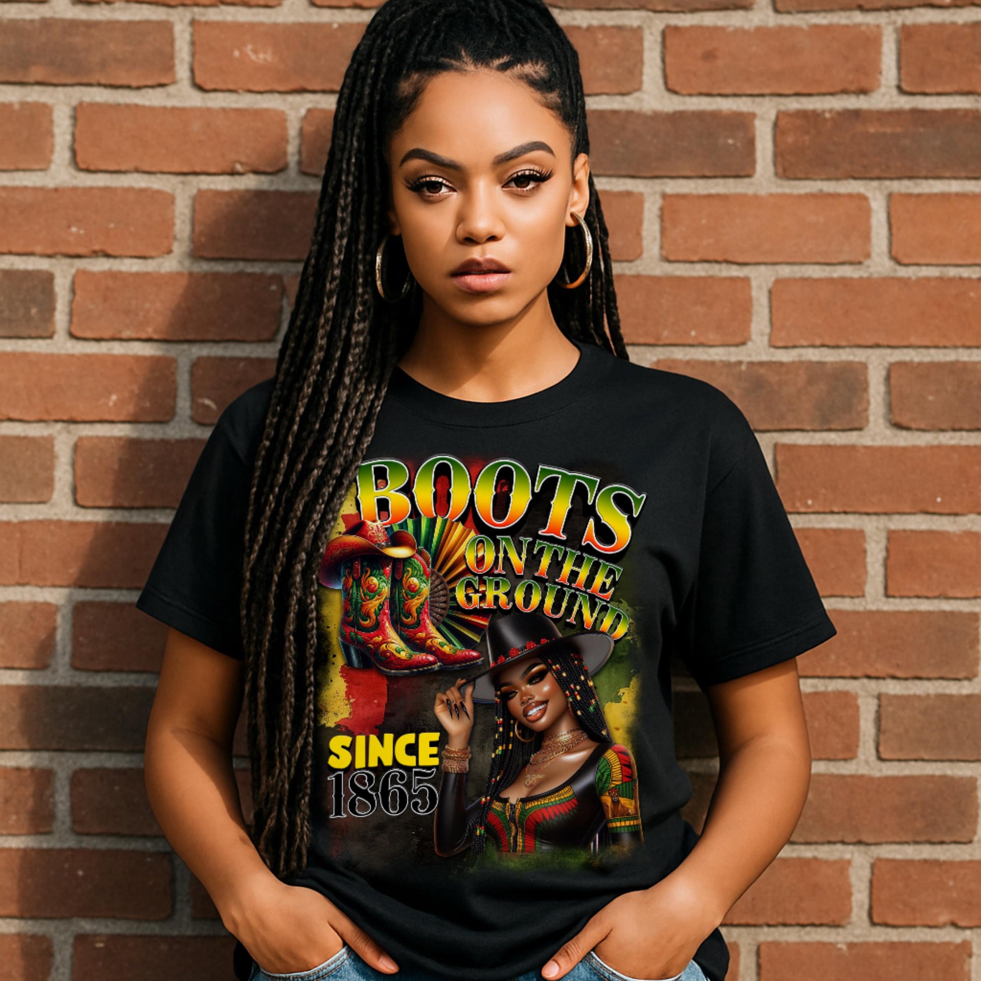 ✊🏾 Celebrate Freedom Loud & Proud – Since 1865! ✊🏾 Step into your legacy with this “Boots on the Ground Since 1865” design—perfect for Juneteenth celebrations, pro-Black fashion, and Southern Black pride. These bold, high-quality digital files bring together culture, cowboy vibes, and unapologetic Black empowerment for your next custom creation.