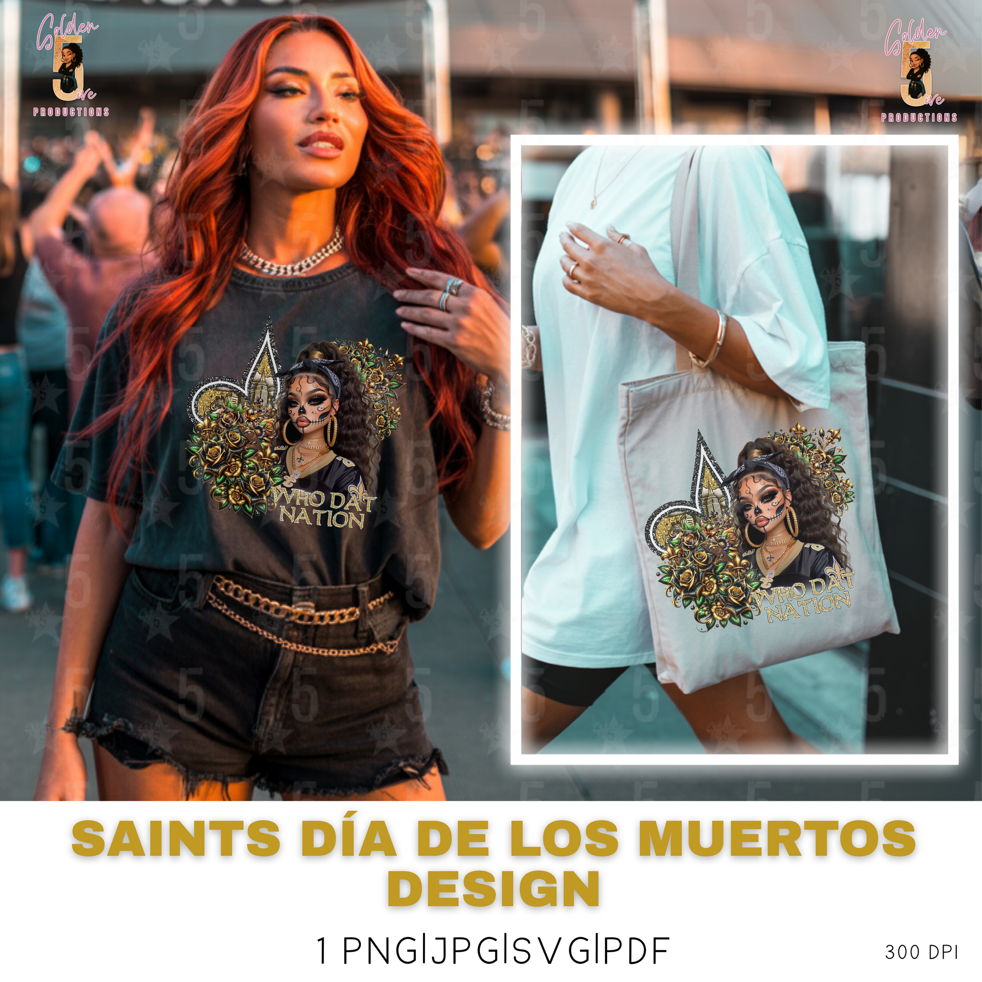 New Orleans Saints Día de los Muertos Design SVG, PNG, JPG, PDF - Instant Download