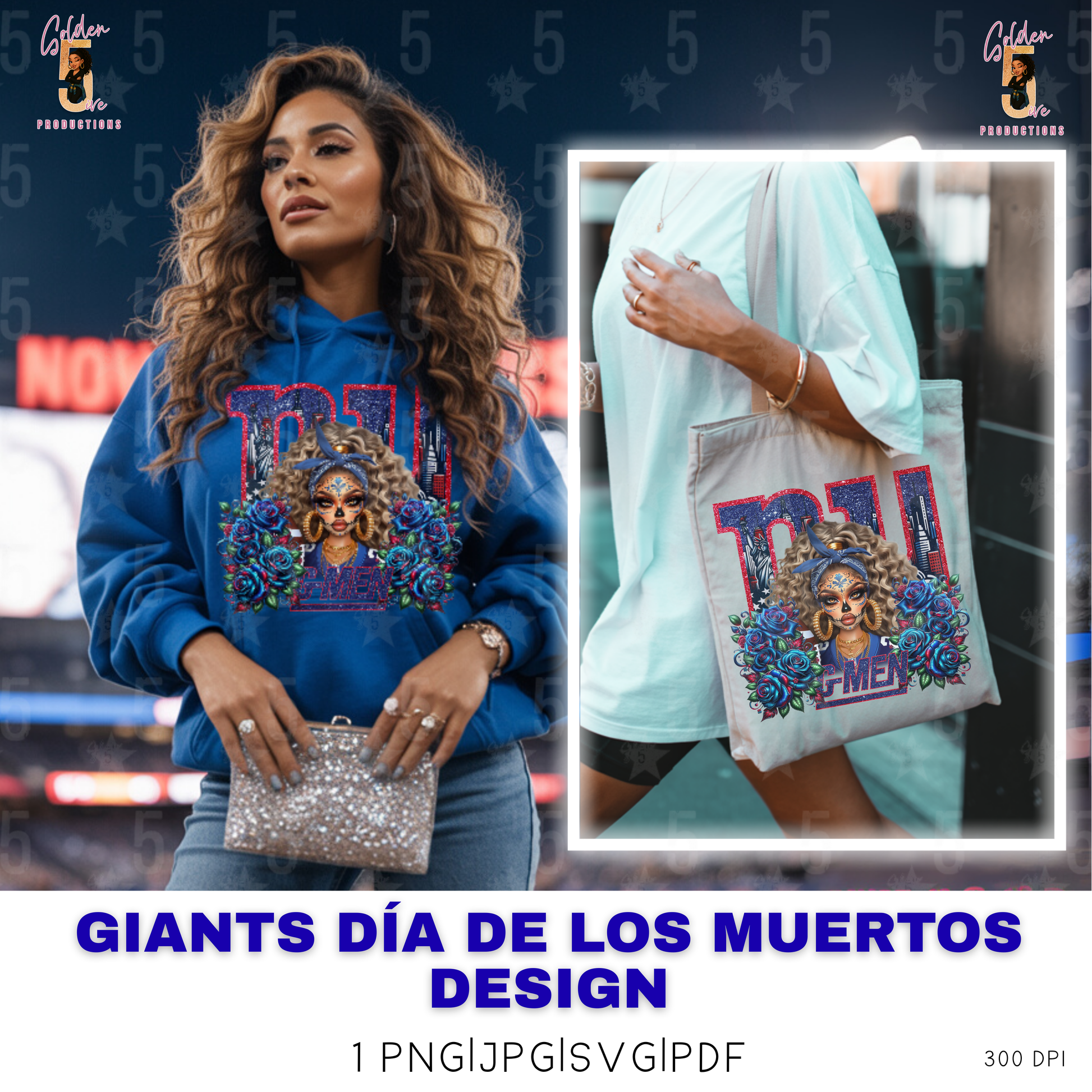 NY Giants Día de los Muertos Design SVG, PNG, JPG, PDF - Instant Download