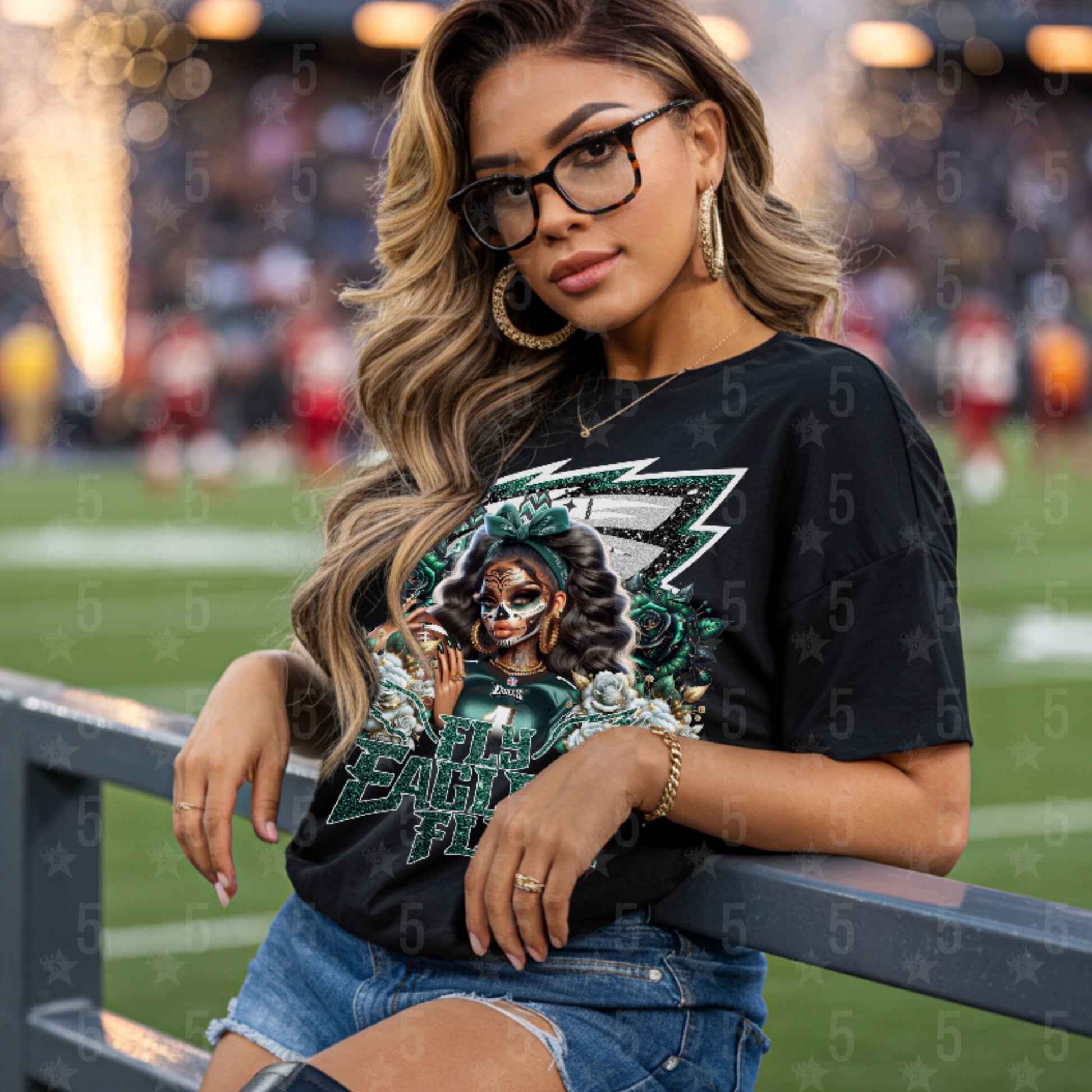 Celebrate your love for Eagles football, culture, and fashion with this unique Día de los Muertos–inspired design. This bold artwork blends NFL fan pride with traditional Day of the Dead sugar skull aesthetics, creating the perfect design for game day, tailgates, or year-round style.