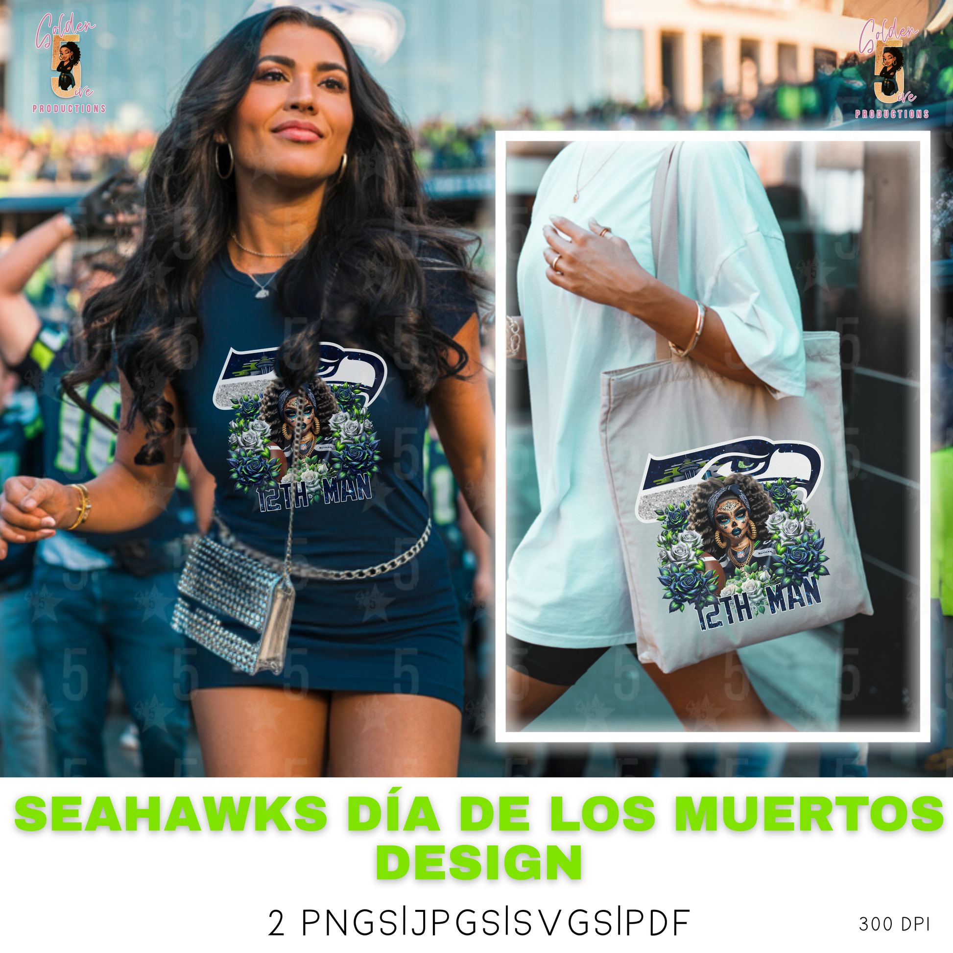 Seattle Seahawks Día de los Muertos Design SVG, PNG, JPG, PDF - Instant Download