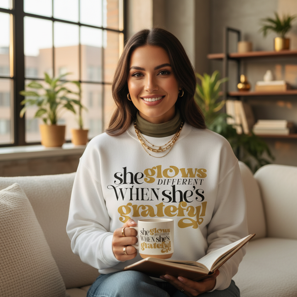 She Glows Different When She's Grateful SVG, PNG, JPG, PDF - Instant Download